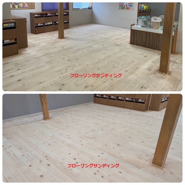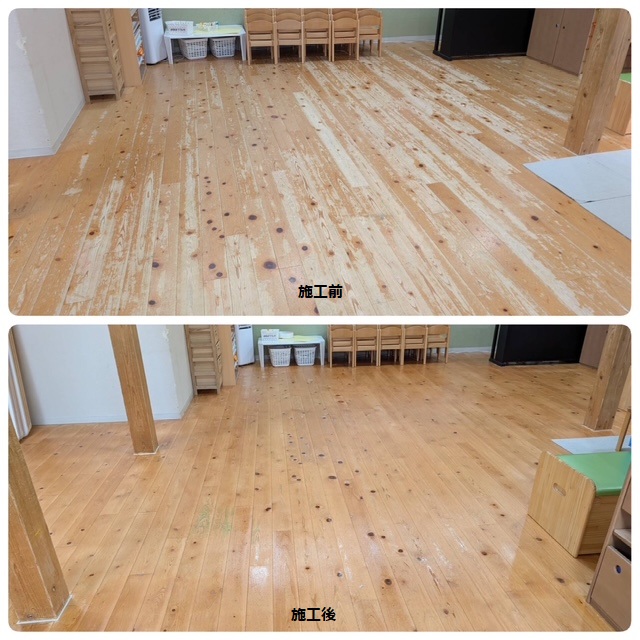 保育園のフローリングは日々多くの園児が歩き、玩具や家具の移動などで摩耗が進みやすい場所です。