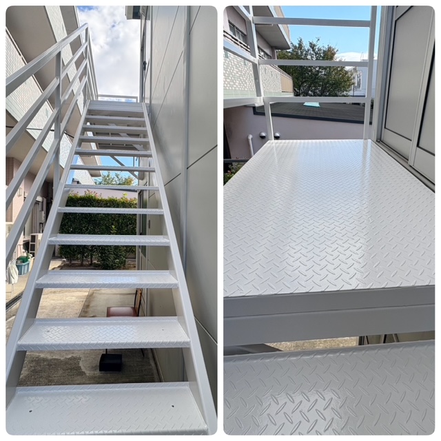 今回は、吹田市にある介護施設様よりご依頼をいただき、屋外鉄階段の塗装工事を実施いたしました。