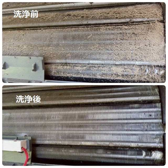 今回ご依頼いただいた保育園でも、エアコン内部の熱交換器部分に多くのホコリや汚れが付着している状態でした。